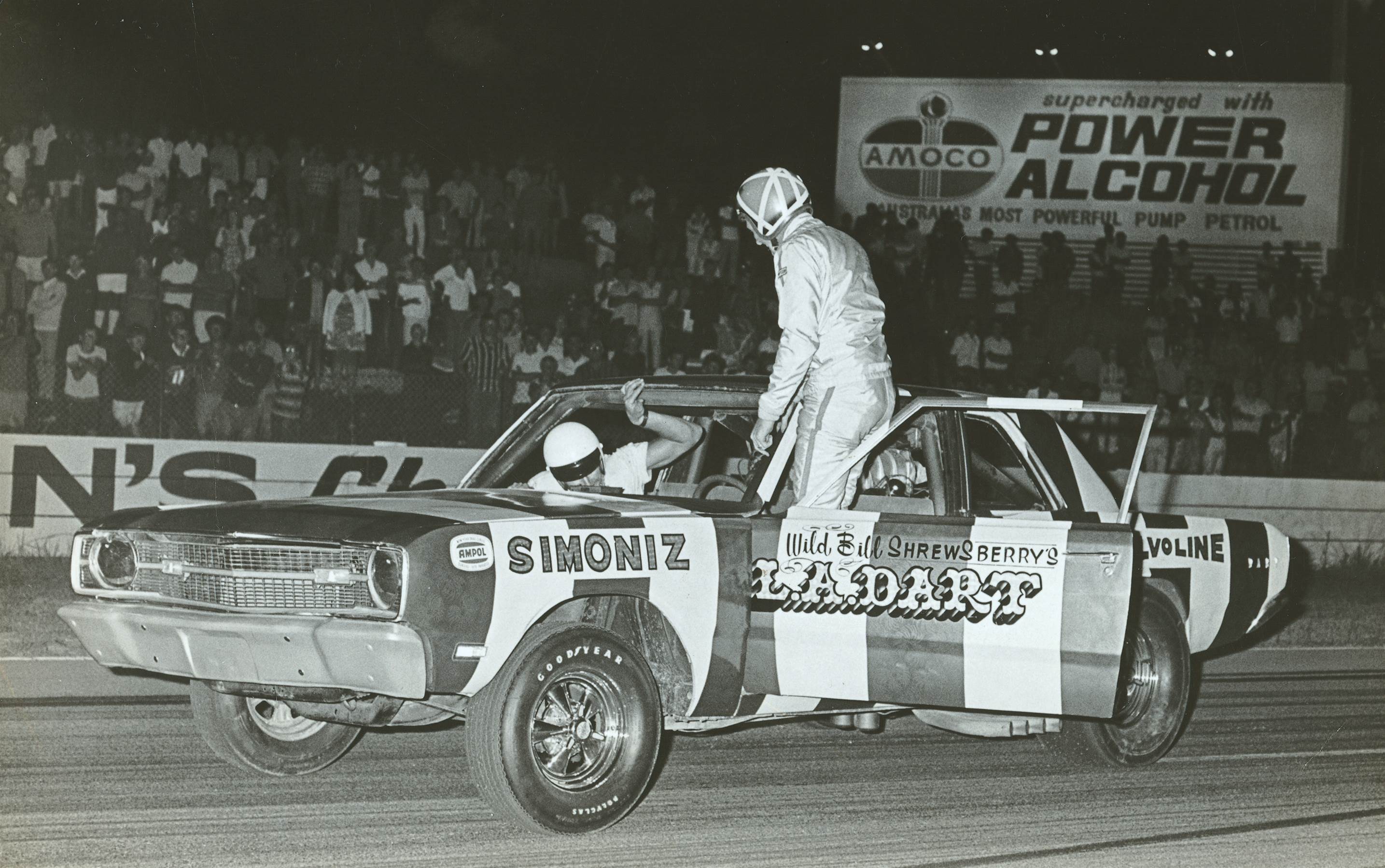 Shrewsberry’s 1970 tour of Australia was the sensation of the year even if some of the more traditional drag racers were upset that he was upstaging them (and being paid a hell of a lot more). Wild Bill dismissed all this by saying that he saw himself as a bit of comic relief in a sport that was starting to take itself too seriously.