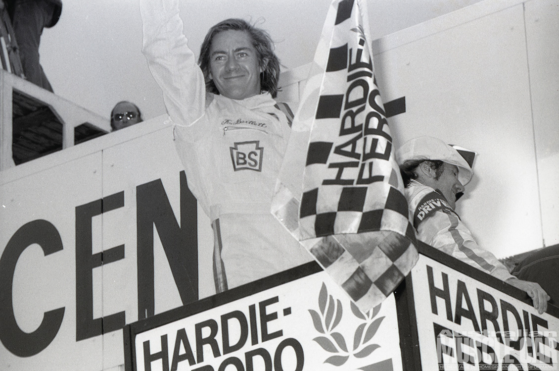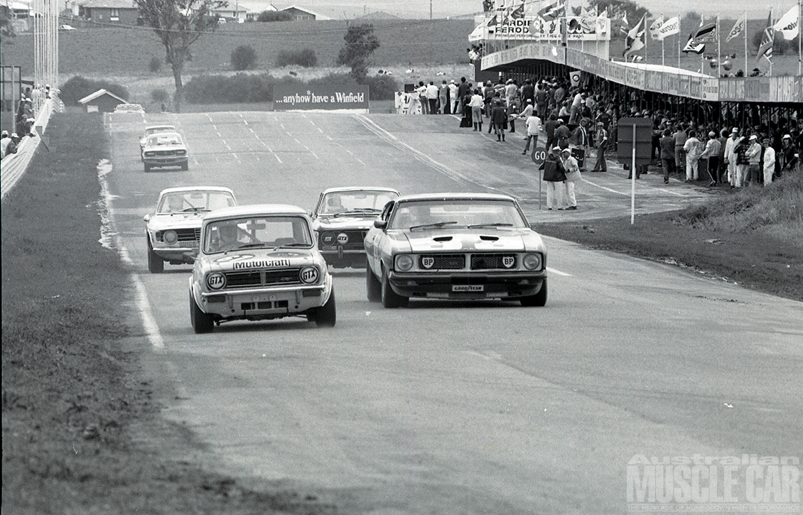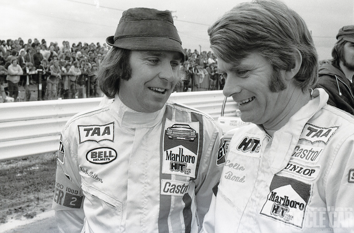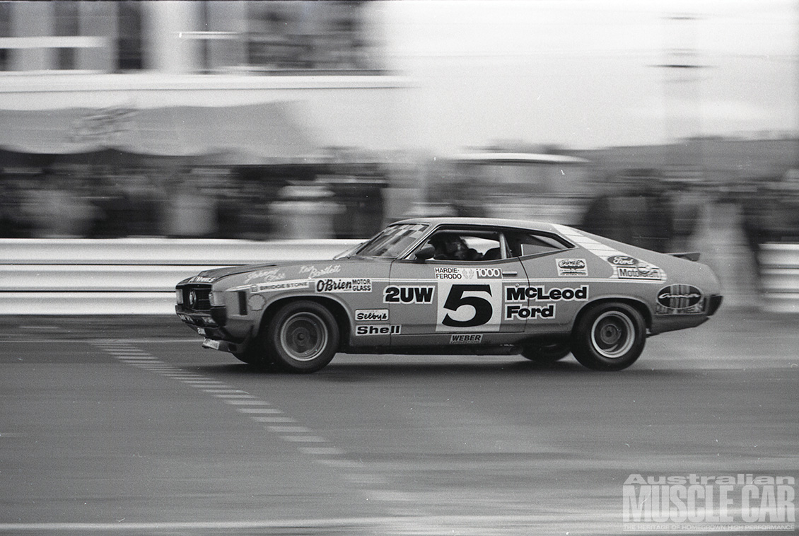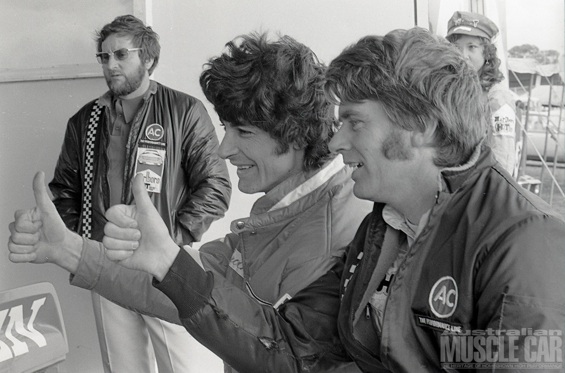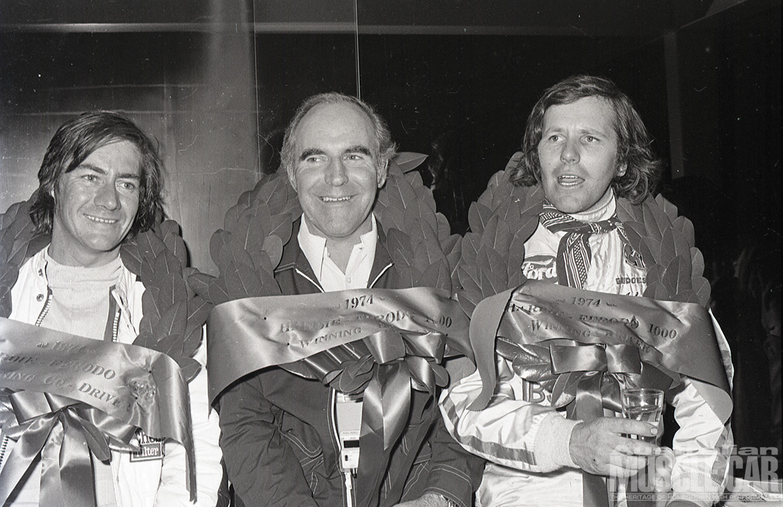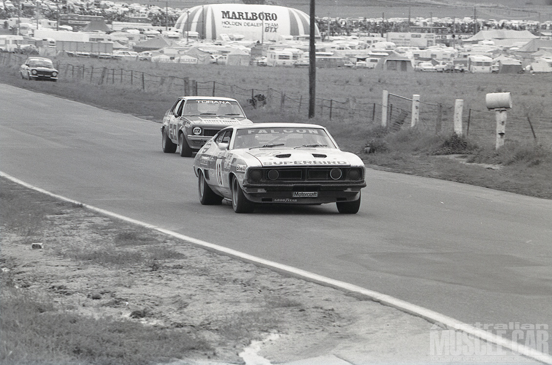 It was the wettest Bathurst 500/1000 yet held and arguably the most exciting as Kevin Bartlett fended off the late-race challenge from Bob Forbes’ Torana L34. KB still needed a walking stick (after the leg injuries he sustained in a Formula 5000 shunt earlier in the year) to get around but in the sodden conditions there could be no safer or more skilled pair of hands to guide the John Goss McLeod Ford Falcon Hardtop to victory.